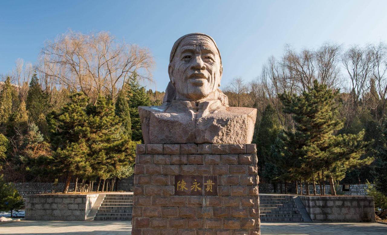 说到大寨,就不得不说陈永贵。 陈永贵出身贫农,1948年加入中国共产党。1952年,陈永贵接替主动让贤的原书记贾进才出任中共大寨村的支部书记,面对非常恶劣的自然环境,他带领农民艰苦创业,从山下用扁担挑土上山造田,改善了当地人民的生活。