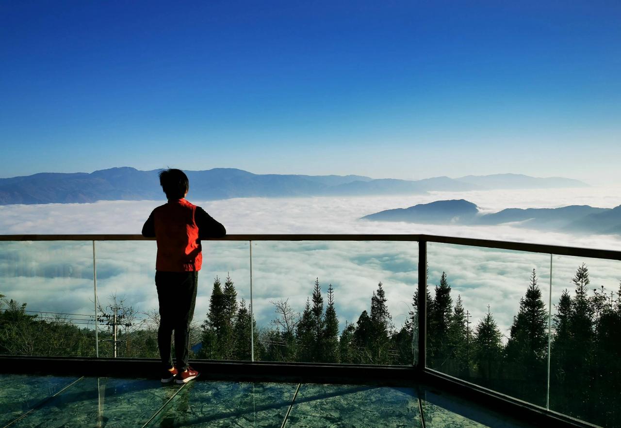 沐浴朝霞,欣赏云海缠绕山峰,何等心旷神怡。