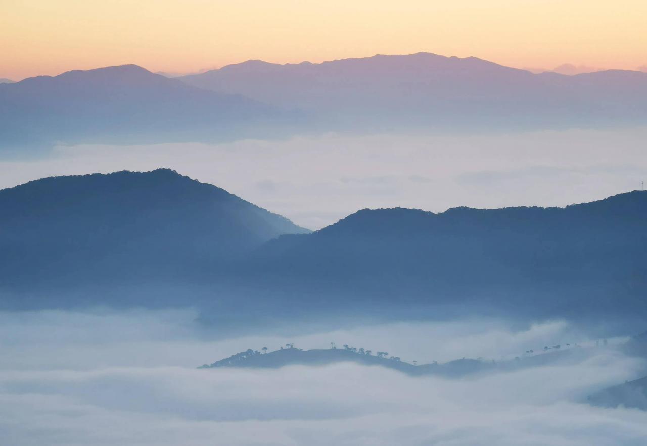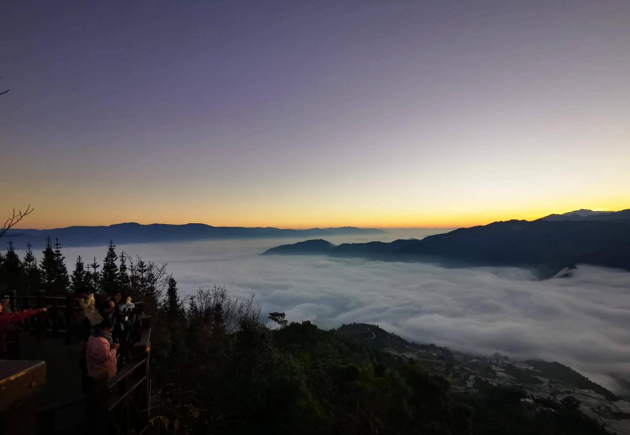 云南与北京可能相差1-2个时区,六点半,天还是漆黑一团,我们就开车去撒马坝景区,借助手机光,摸黑来到观景台。撒马坝梯田位于红河县城以南30多公里处,有梯田1.4万亩,连绵的梯田级数最长达4300多级,号称世界第一,有“不到撒马坝,不知梯田大”之美称,被评为“云南十大特色旅游新地标”。晨曦中的撒马坝梯田,呈现在我们眼前的是漂浮在峡谷中的云海,纹丝不动,裸露的山头,如茫茫大海中的小岛,而世界第一的万亩梯田则被云海所淹没,只有地势稍高的梯田,坚强地昂起头,在光线的直射下,露出其真面目,梯级分明,堤线曲动。你要问我,撒马坝梯田到底咋样,我可说不好,因为云雾的缘故,我没看到梯田的全貌,但云海的广袤和山峰的翘楚,被遮掩的梯田不会渺小、猥琐,仅万亩的规模就不容你小觑。下山后我们发现,下山途中遇到的雾,和在海拔1300米头顶上方阴沉沉的天空,正是我们在海拔1900米所看到的云雾。现在明白了,下次遇到阴沉的天空,只要有山,能往上走,一定能看到云海,犹如我们在万米高空的飞机上,白云和云海就在我们脚下。