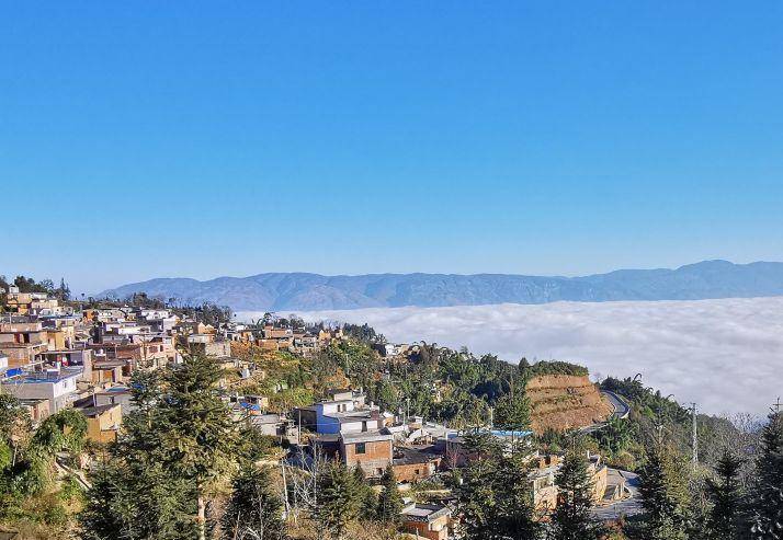 骑云跨雾的山村。