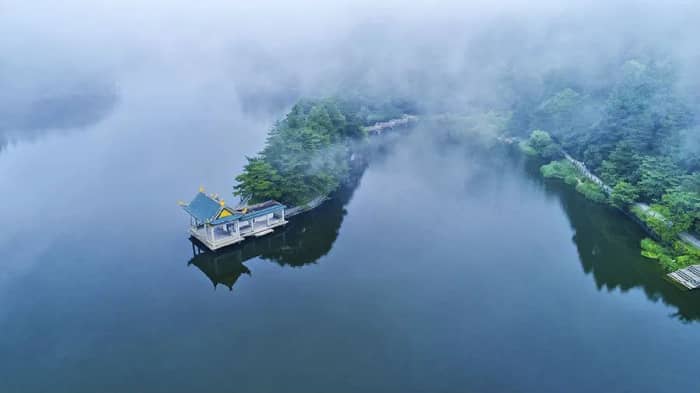 早上从九江市区出发,当钢筋水泥的逼仄热浪被辽阔绿意的清新凉意所替代的时候,预示着庐山西海到来了。