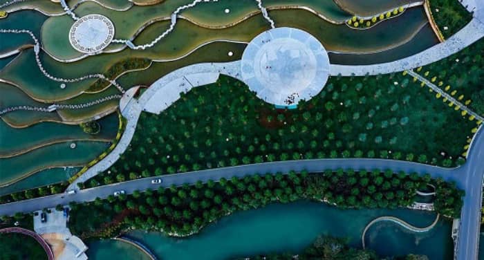 湖泉生态园是弥勒市建设和旅游总规中“一廊、一区、三带、三园”结构中的第一园,总体规划共有7个水面、5个景区,是弥勒人自己打造出来的一件佳作。整个园区湖光山色,绿草茵茵,树木成林,景色宜人,园区内人来车往,特别是银沙滩一带游人如织,形成了一道亮丽的风景线。在这里,或泡着温泉,或悠然躺卧,或读一本好书,或品一杯香茶,冥想之中获得一种怡然自得的感受。