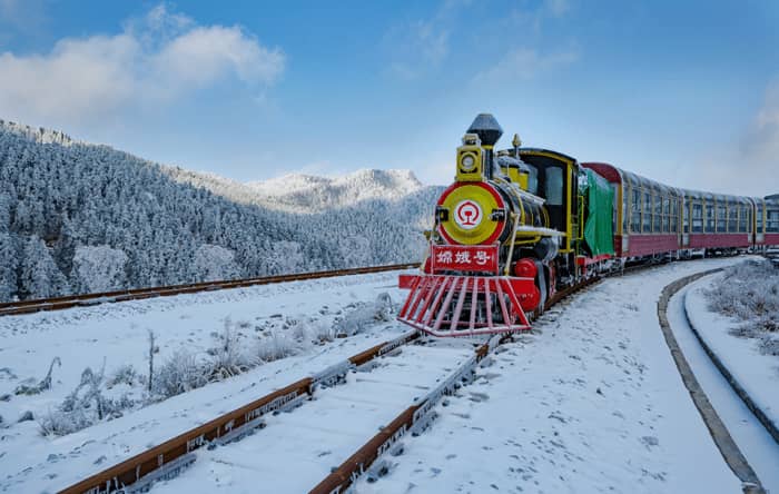 继续往前走,你将看到的是明月山的“雪国列车”,坐上小火车,穿梭于1700米的山巅之上,幻想即将去往哈利波特的魔法世界,拿出相机记录画面,每一帧都能让你的动态迅速出圈!