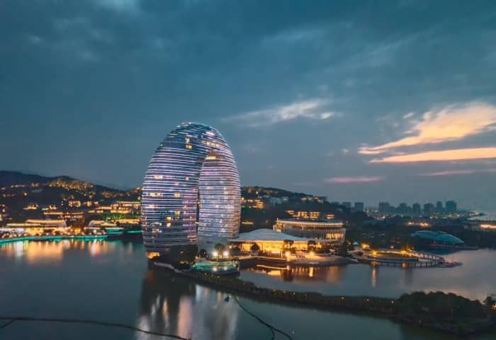 在南浔慢慢逛差不多也要一整天的时间,晚上可以选择回到湖州市区住,这样第二天出发去安吉更方便。如果有时间,晚上可以顺便去月亮广场看看湖州的标志建筑——月亮酒店的夜景。