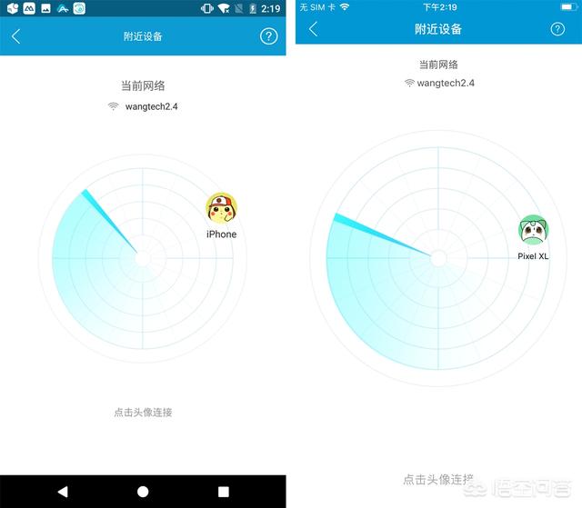 进入之后会自动检测其他设备,检测到之后,点击头像连接即可。
