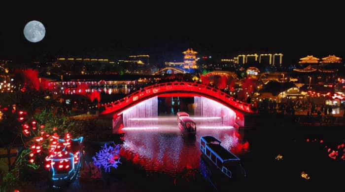 小宋城,胜似千年的“东京”夜市,里面亭台楼榭,雕梁画栋,小桥流水,锦鲤戏莲,无论外面狂风暴雨,雾霾大雪, 这里依然四季如春。汇聚了流传千年的开封传统小吃上百种,灌汤包子、无腮黄焖鱼、桶子鸡、中华一绝的齐氏大刀面、罗记炒凉粉、胡辣汤等应有尽有,是吃货的天堂。进入里面,要先买卡充值,离开退还余额。