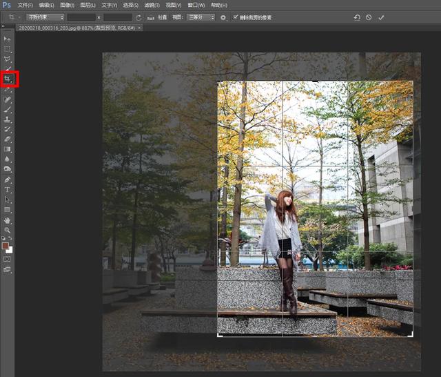 最后,在后期也可以调整照片,在PS里可以用二次构图方法裁切画面,同时可以用污点修复工具去掉不想要的画面。例如下面这张照片,画面元素太多,先将照片导入PS,用二次构图裁切。