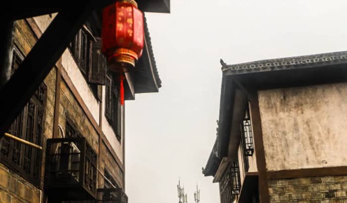 在后街和流场巷两条街道中穿梭,我能看到一线天的狭长天空,有窗机明镜的花纹,有高高翘起的檐角,还有嵌入土墙中精致的花瓶。
