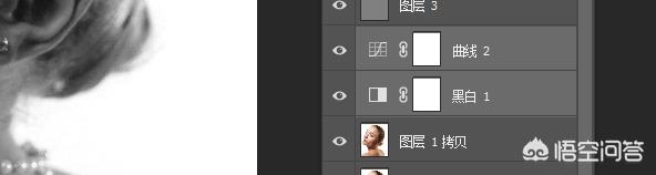 6丶新建黑白,在上方新建曲线调整图层,将这两个图层编组,这就是个观察层。但非常重要。