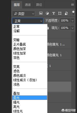 7、在新跳出的菜单中,选中“柔光”点击。设置图层模式。