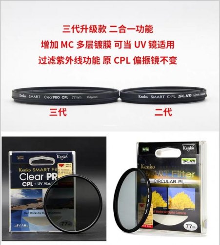 不过一个偏振镜可以用几十年,提议还是买好的,如肯高,价格能接受,质量也不错。