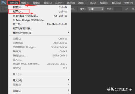 6.打开ps,单击文件选择打开,在文件夹中选择需要的文件,如下图所示: