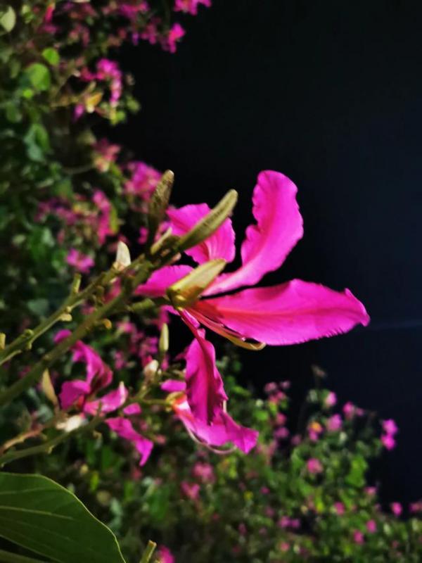 普通华为手机拍夜景,我的经验是,不要等天完全黑下来拍,而是有一定光线,同时还要有光照才能拍的,全黑而且没有光源,是没法拍的哟!