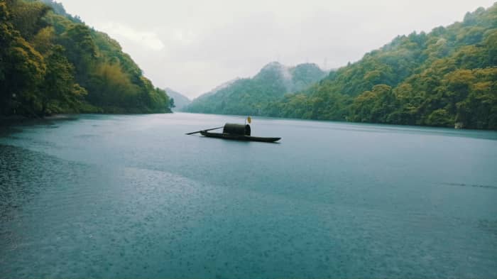遇龙河漂流:80元/人,水厄底——万景人工撑筏,两人一筏