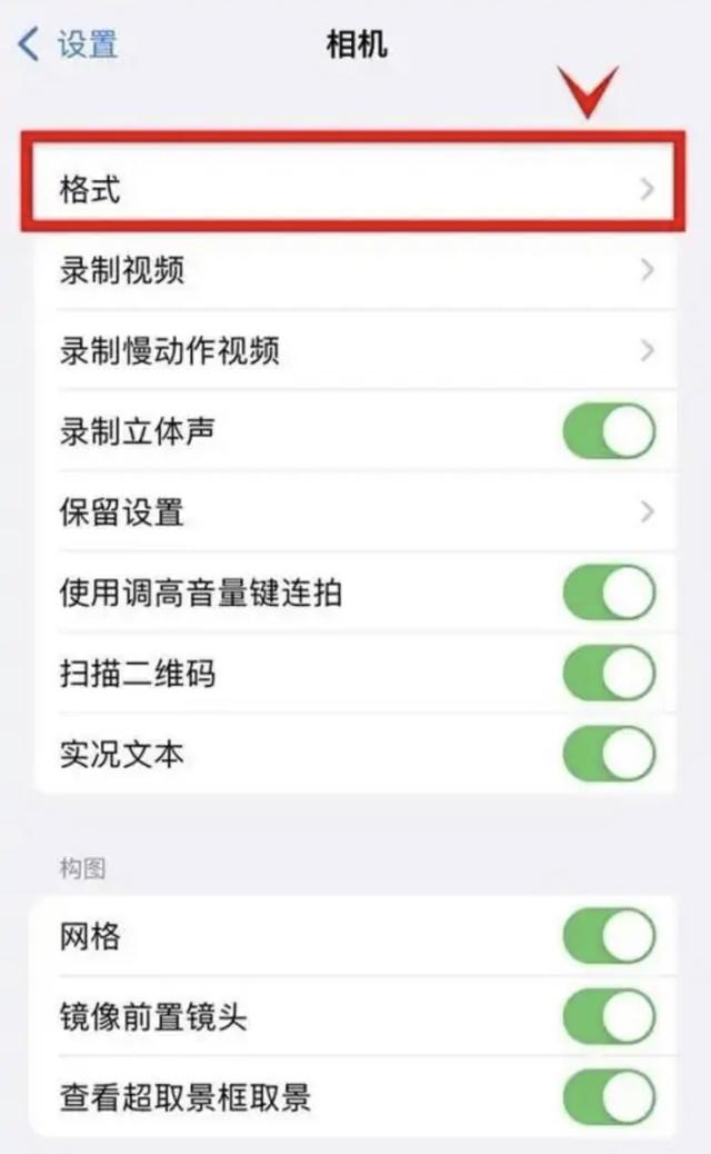 若要在支持的机型上设置 Apple ProRAW,请前往“设置” >“相机”>“格式”,然后打开“Apple ProRAW”。