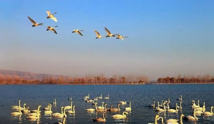 圣天湖湿地生态休闲度假区,位于芮城县东20公里处陌南镇南的黄河岸边,是我国黄河中下游最大的国家级湿地保护区,也是一处河道变迁遗迹性的湿地,与河南灵宝市的函古关隔河相望。这里景色宜人,风物蔚为壮观,被誉为山西河流湿地的典范,中原黄河湿地的明珠。夏日湖中荷花争艳,荡舟湖中;冬季上万只白天鹅迁移到此,尽展雍容气质,把湖面装扮得生趣盎然。“夏赏荷花,冬观天鹅”已成为圣天湖的独特风景。