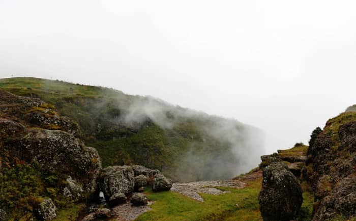大山包景区一直在下雨,白雾笼罩,能见度较低,让人更惊奇的是荒凉广袤的草原上突然点缀着三五成群的牛羊,那些灵动的生命自在悠闲,好不惬意,那是天牧吧!在牛羊的上方,离草地很近的地方,白云、浓雾快速地流动,哦,那就是行走的云,行走的雾!我们置身其中,仿佛穿云破雾,那种云雾拂面的感觉真的很神奇。