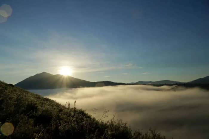 观景台上全部是雾,偶尔可以看到村庄的样子,日出真的绝美!听说在上面经常可以看到彩虹。