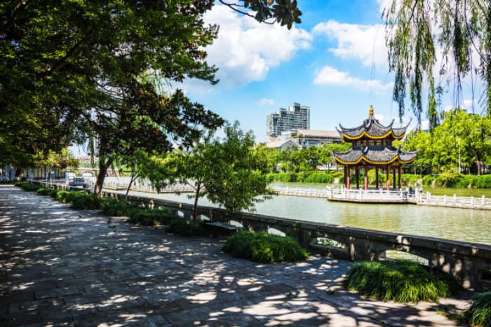 B、莲花庄(建议游玩时间:半天)开放时间:8:00-18:00门票:免费始建于元代的江南古典园林,白居易在这里写了诗,赵孟頫在这里买了房。竹林,荷花,庭院,假山,适合和家人一起遛弯闲逛,或者划划船锻炼身体,是一个本地人爱逛的公园。