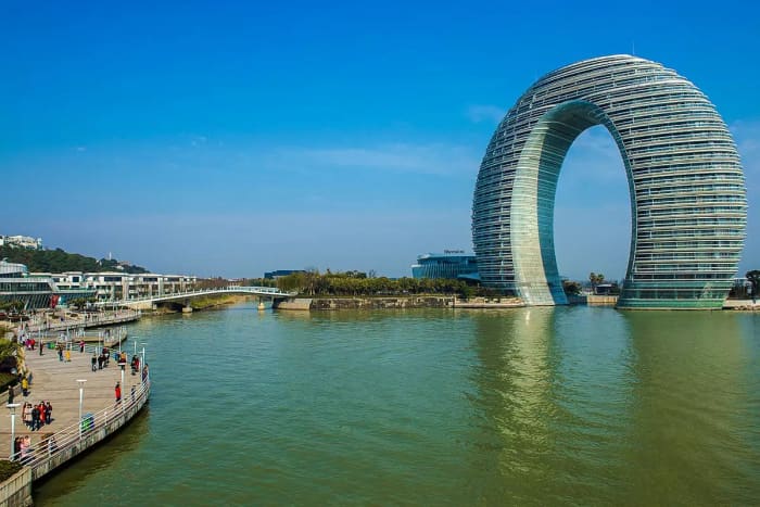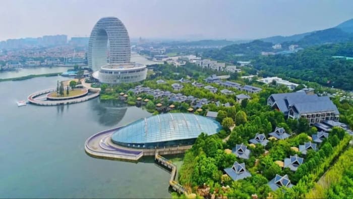 2019年刚设立的新区(但不是行政区划概念的新区,隶属于吴兴区),可玩区域主要为湖州太湖旅游度假区,由于这里的气质十分现代,与吴兴区老城迥异,所以单独列出来。A、黄金湖岸门票:免费时间:7:00-18:00,月亮酒店灯光秀19:00-21:00被低估的江南宝藏,旅游价值洼地 | 湖州旅游攻略黄金湖岸是一个综合旅游平台,由月亮广场、渔人码头、太湖阳台、小梅山、邱城山、古木博物馆等组成。政府正在此主导南太湖夜间游项目“南太湖五彩之夜”,包含“夜光+夜游+夜市+夜吃+夜宿”,想把它打造成一个旅游品牌。这里最著名的莫过于月亮酒店(喜来登酒店),中国第一家水上白金七星级酒店、湖州的新地标,当地人亲切地给她一个有滋有味的名字——“马桶盖”。到了晚上,马桶圈变幻出五颜六色七荤八素的光,特别梦幻。还有金主会砸钱在上面做广告:XXX,嫁给我吧!虽然不知道他花了多少钱,但我鄙(xiàn)夷(mù)这铜臭味的浪漫!