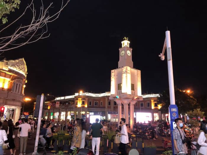 晚上的钟楼在灯光的照射下更有艺术气息,游客络绎不绝,穿梭于东西街、中山路。