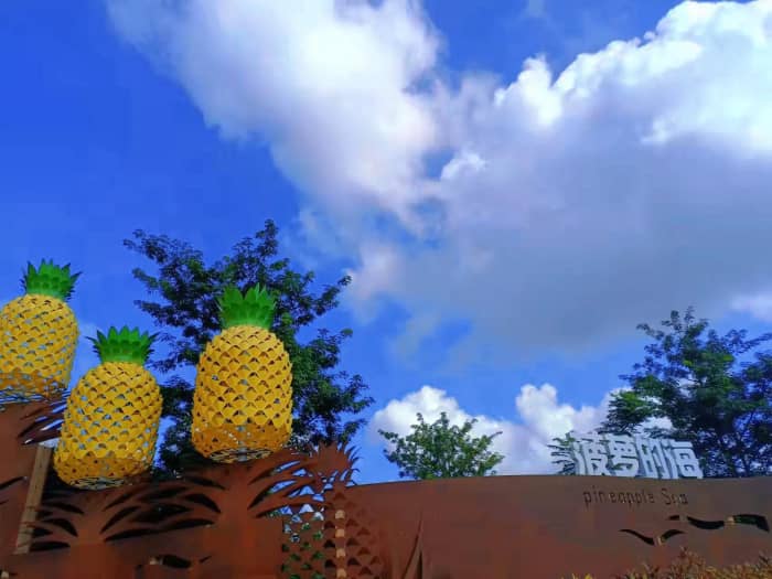菠萝的海位于湛江市徐闻县,也就是我从小长大的地方,徐闻是去海南岛的必经之路,苏东坡曾说:“四州之人以徐闻为咽喉。” 这片长在陆地上的“菠萝的海”,面积大约35万亩,有5个澳门那么大。这里提供了中国40%之多的菠萝产量,平均每3个菠萝就有1个来自徐闻。