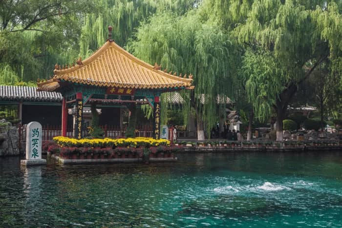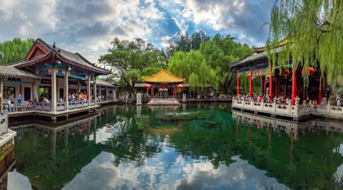五龙潭南临趵突泉,北接大明湖,潭周名泉众多,形成五龙潭泉群,内有泉池二十七处,也是五一不可错过的泉水景观打卡地!