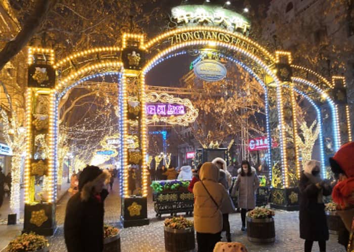 中央大街就是城市核心区,地位和北京王府井、天津滨江道差不多的一条俄式风格商业街,夜幕降临无数灯光、冰雕、雪雕交相呼应,特漂亮