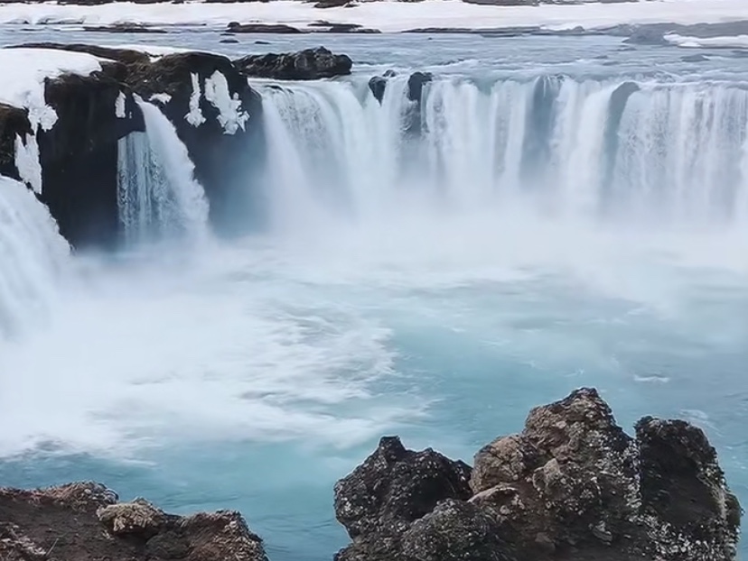 位于冰岛北部,米湖去往阿克雷里的路上,1号环岛公路沿线,高12米,宽30米,冰岛著名的瀑布之一。由于其地理位置偏北,天气变幻莫测,形成了各种壮观多变的瀑布奇景。据说当年冰岛宣布基督教为冰岛的正教,将之前信仰的北欧诸神圣像投入了瀑布中,从此以后,这个瀑布便被称作众神瀑布。