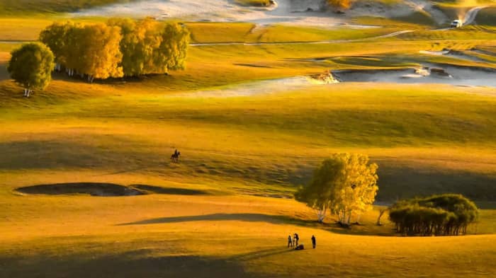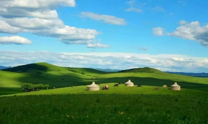 傍晚的时候,我们可以去敖包图观看白马奔腾,晚上我们可以去蒙古包换上他们的传统服装,吃一顿诈马宴,在蒙古包里我们吃着当地的特色小吃,内蒙的手扒羊肉,杯一口奶酒,还能一边欣赏他们用歌声和舞蹈所表达的内蒙文化。