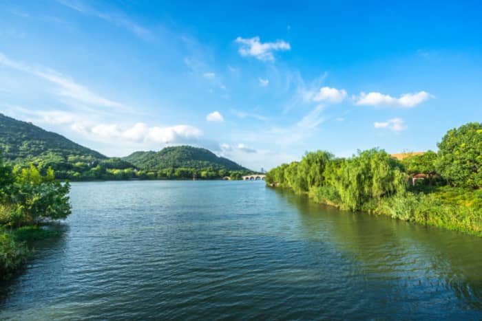 沿着岸边的石板路往前一直走,途中如果细心留意的话,还能看到马爸爸创办的湖畔大学,藏在层层叠叠的绿荫里,当再看到一个比较开阔的湖面的时候,浴鹄湾就到了。