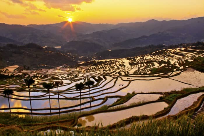 撒玛坝梯田看云海,普者黑看夕阳